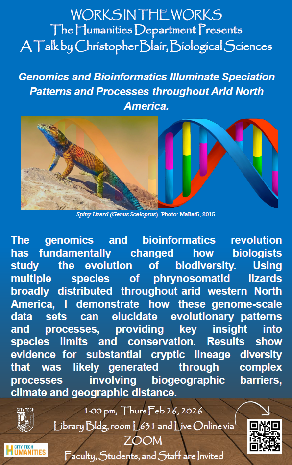 Works in the Works is a monthly speaker series sponsored by the Humanities department. Originally aimed at showcasing our faculty members’ research or creative work, it has successfully evolved to include the work of faculty members across campus and collaborative efforts with those from Humanities. Students, faculty, and staff are welcome to attend.
